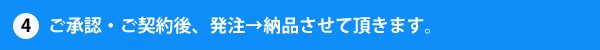 弊社の御提案、見積を御承認いただいた後、 ご契約させて頂きます。 製品を発注・制作完了後、トラックで 現場まで運搬致します。 ※納期については案件毎に異なります。 |