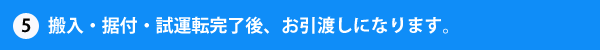 図面通りに機器を搬入・据付後、試運転を行い 実地説明等を終えた後、お引渡しになります。 また、納品後の不意の故障や、 トラブルに至る前に行う、 定期点検など幅広く対応し、 部品交換・アフターフォローなども 迅速に対応させていただきます。 |